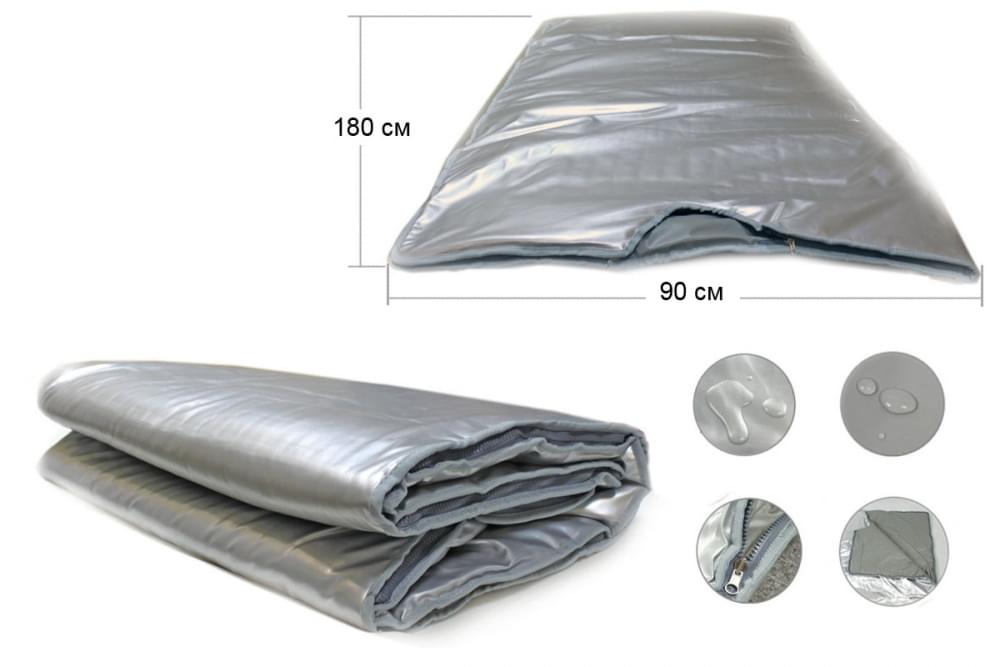 Термоодеяло поддерживает функцию плавной регулировки температуры по каждой секции термоодеяла, регулируется индивидуально при помощи блока управления. Нагрев происходит до 85°С. Одеяло обеспечивает защищенность от электричества даже во влажной среде. С помощью термоодеяла можно проводить различные косметологические процедуры, которые направлены на коррекцию тела, обертывания, для усиления действия косметических средств, воздействие на целлюлит любой стадии, выведение из организма избыточной жидкости, уменьшение избыточных жировых отложений, снижение веса. Термоодеяло на молнии, произведено из прочного и лёгкого ПВХ