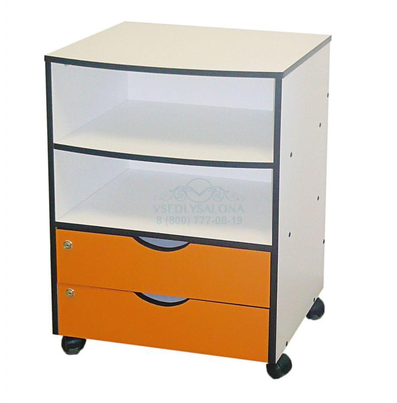 Тумба с полочкой и двумя ящиками, материал ЛДСП — цвет на выбор, передняя панель ящиков отделана пластиком — цвет на выбор, на колесах