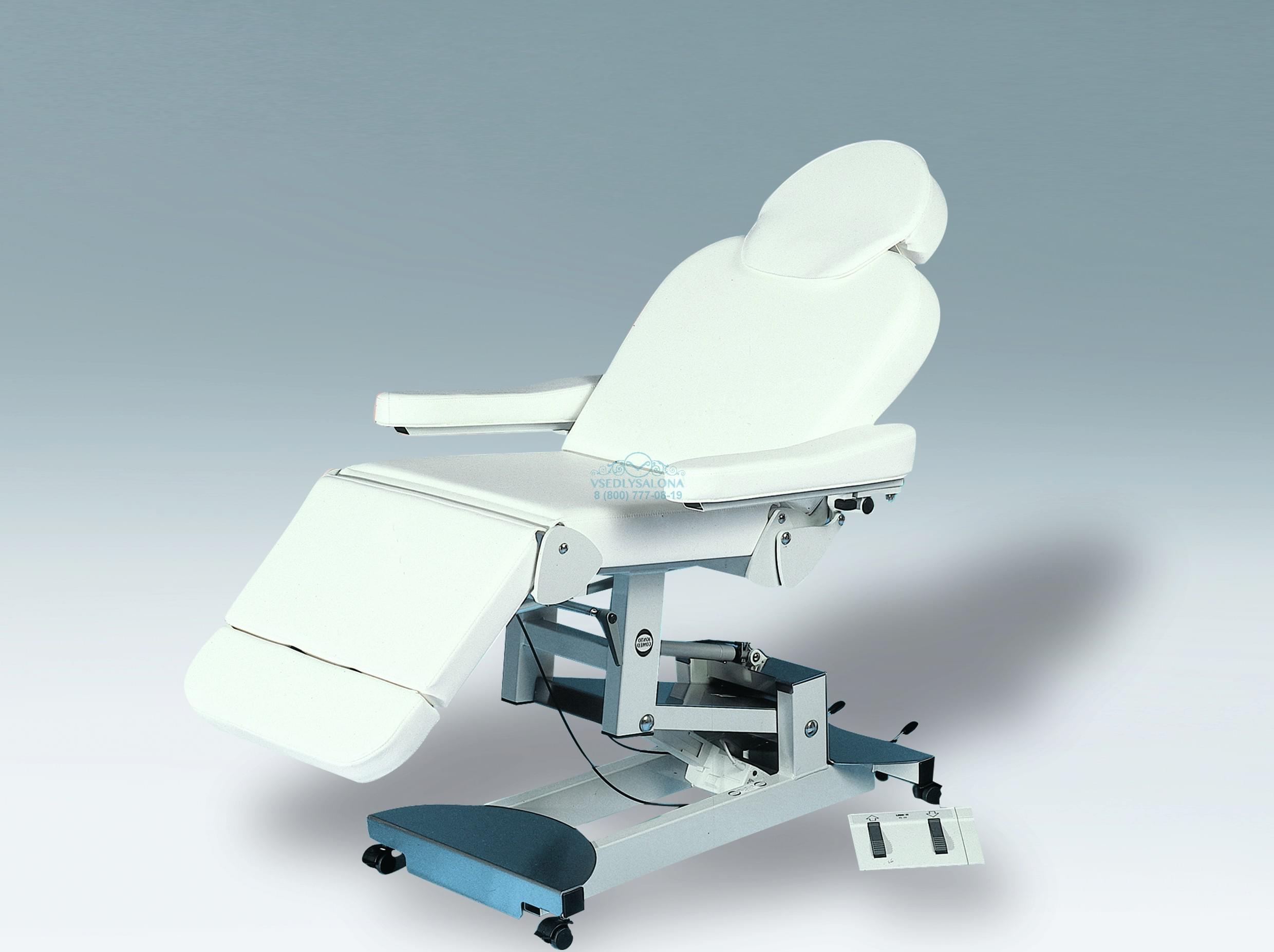 Компактное кресло-кушетка для косметических процедур, массажа и педикюра. Очень низкая высота для посадки – 51 см. Кресло-кушетку можно установить в горизонтальное положение для массажа. При этом подлокотники перемещаются вперед и создают удобные поддержки для рук при выполнении массажа спины. Хорошо подходит для педикюра: поддержка для ступней выдвигается на 12 см