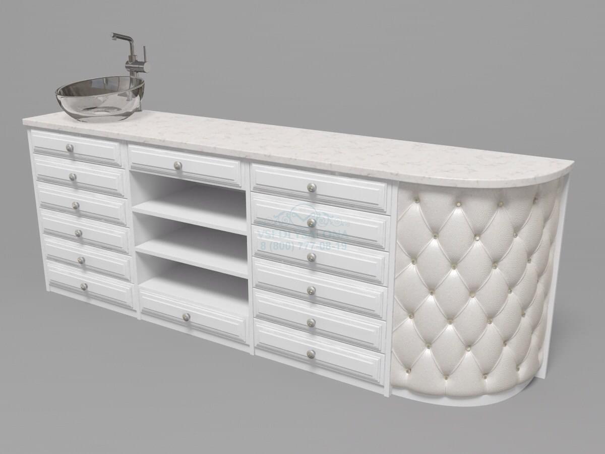 Лаборатория оборудована удобными открытыми полками и выдвижными ящиками