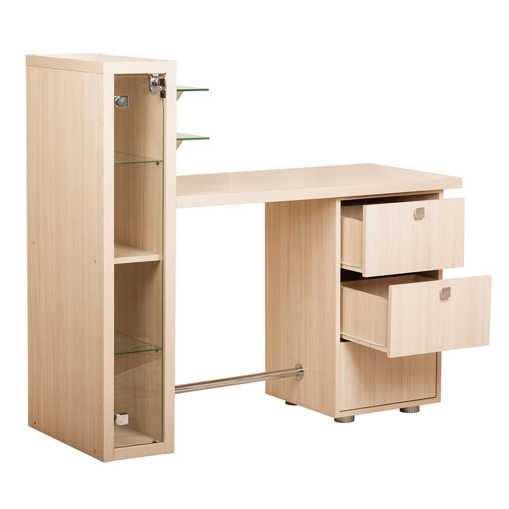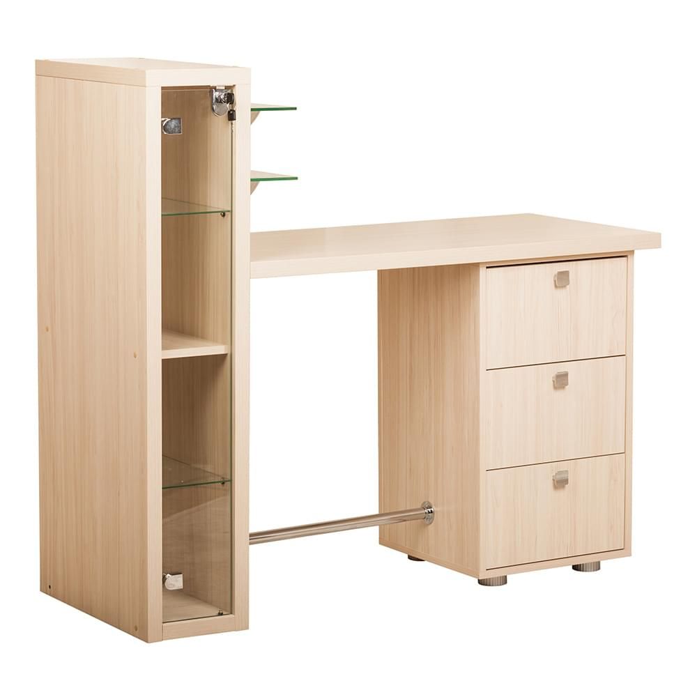 Маникюрный стол 200 – новое, красивое изделие, которое на сто процентов подойдет эстетам, ценителям прекрасной моды и очень гармонично впишется в общие картины интерьерной компоновки. Этот комплект состоит из деревянной столешницы, тумбы на три ящика, полки, боковой стенки с внутренним отделением, где часть находится под стеклом, двух креплений, широкой ниши с вставной полкой, двух навесных зеркал с хромированными держателями, трех кнопок для открывания дверей, круглых ножек и хромированной трубы для постановки ног. Стиль хорошо смотрится на фоне искусственного освещения, при этом отражает все иллюзорные штрихи особой ноты. Популярный среди молодёжи. Надежное, гарантия успеха и достижений. Фишка находится во всей области восприятия. Тонкие грани, нити, подчеркивают индивидуальный подход.