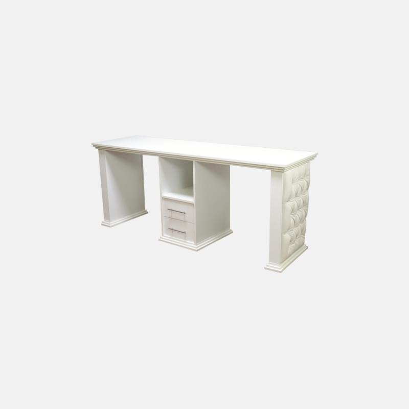 Маникюрный стол для двух мастеров с каретной стяжкой на одной ноге и тумбе.