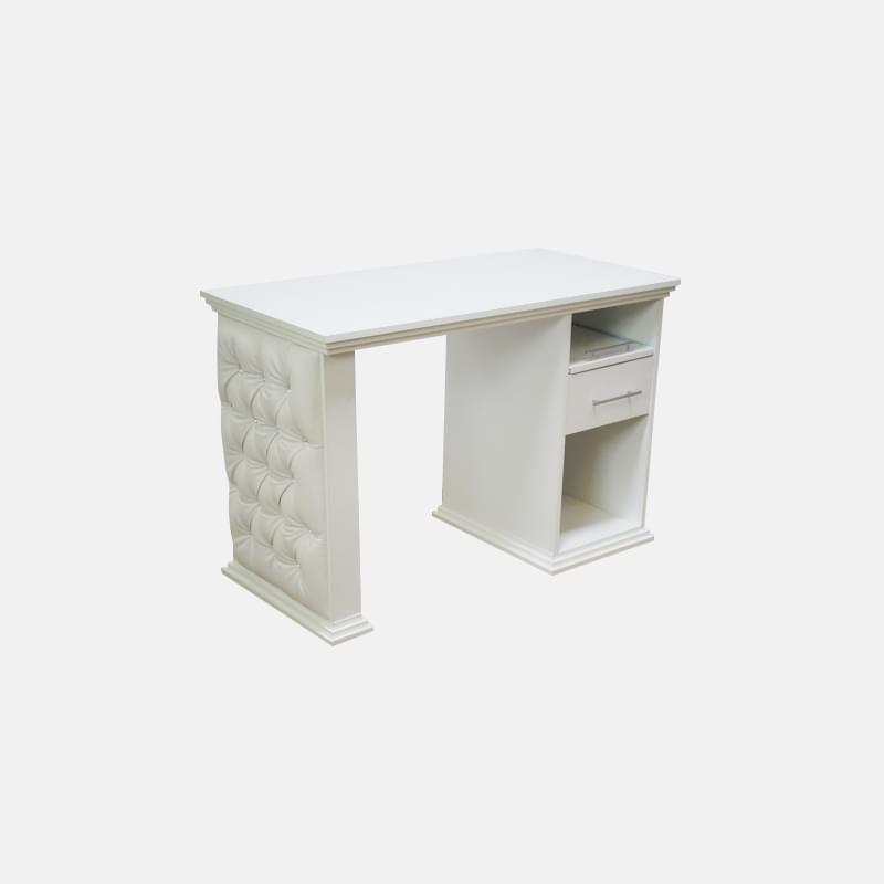 Если вам нужен компактный и удобный в работе маникюрный стол с каретной стяжкой, представляем модель «Витэлия». Столешница достаточно большая, но остальные элементы делают стол компактным – ножка и небольшая тумба с одним выдвижным ящиком и двумя нишами. Места для всего необходимого достаточно.