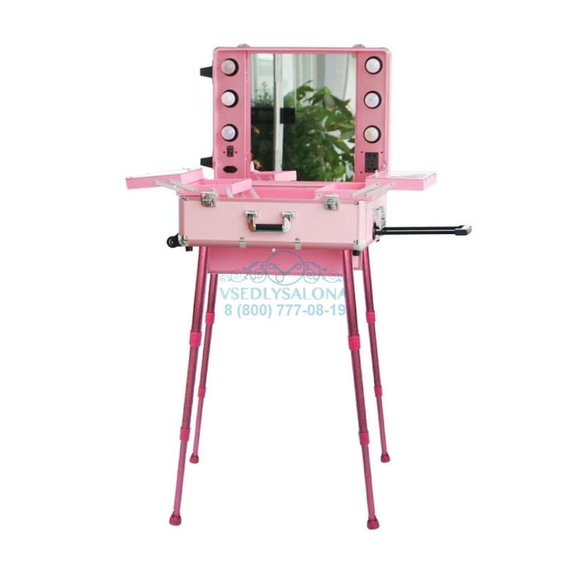 Мобильная студия визажиста с подсветкой розового цвета - полностью оборудованное рабочее место визажиста, стилиста или парикмахера.