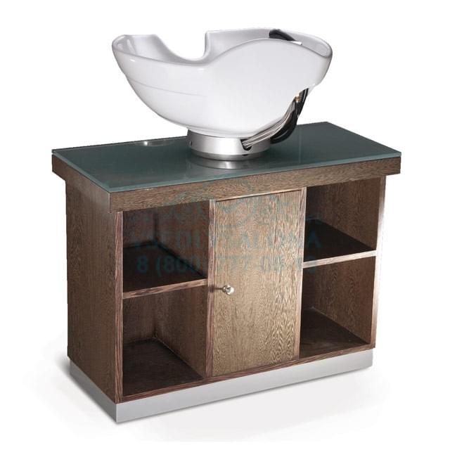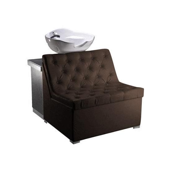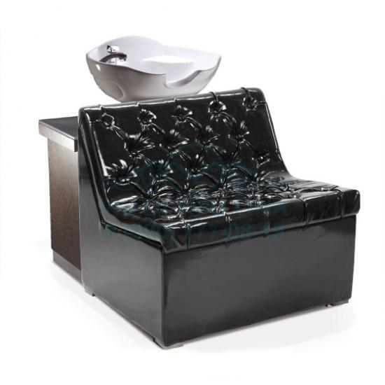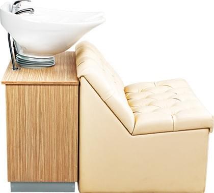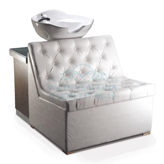 Широкое кресло очень эффектно выглядит и больше похоже на небольшой диванчик. Белоснежная мойка отлично сочетается с контрастной по цвету полкой, на которой мастер может удобно разместить полотенца и другие предметы.Качественные материалы и обивка позволяют мастеру не беспокоится о возможном загрязнении изделия. Все материалы легко очищаются при помощи обычных средств.