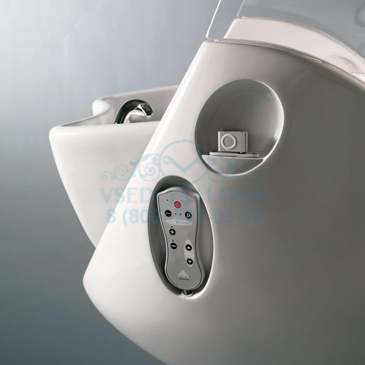 Современная и элегантная мойка. Оснащена подвижной раковиной и арочным сводом, в который встроена светодиодная подсветка с эффектом хромотерапии, оказывающим лечебное воздействие, и музыкальное сопровождение с возможностью установки музыки на любой вкус. Кресло на электроприводе с подъемом подножной части, трансформацией в лежачее положение и системой массажа Шиатcу. Возможен вариант без массажа, хромотерапии и подножки.