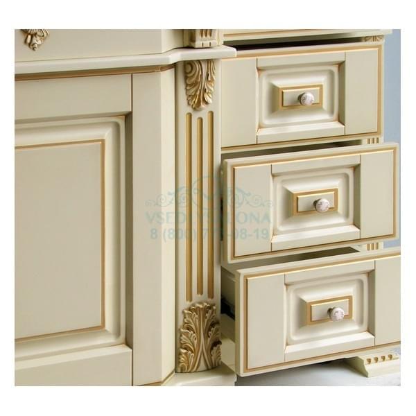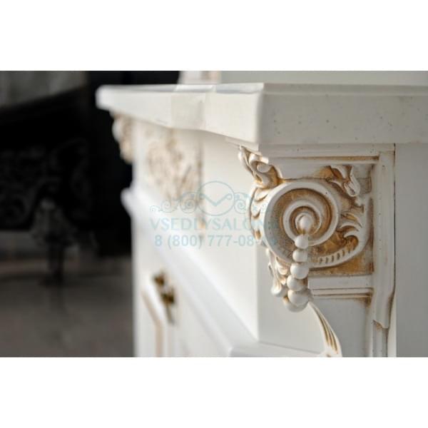 Портал «Людовик» - это сочетание мягкой роскоши французской классики и современных технологий. Классический орнамент подчеркнут золотой патиной, которая гармонирует с со снежно белым цветом самого изделия. Большое зеркало подсвечено двумя софитами, что делает парикмахерскую визуально светлее и просторнее. Каменная столешница придает изделию монументальность и грандиозность, а матовые витражные стекла вносят нотку романтики. Ножки портала Людовик стилизованы под ступени и фундамент. Все детали в несколько слоев вскрыты грунтом, краской и лаком. Множество ящиков позволит разместить множество необходимых в парикмахерской инструментов. Фурнитура исключительно от ведущих европейских производителей позволит порталу служить долгие годы, оставаясь таким-же удобным и функциональным.