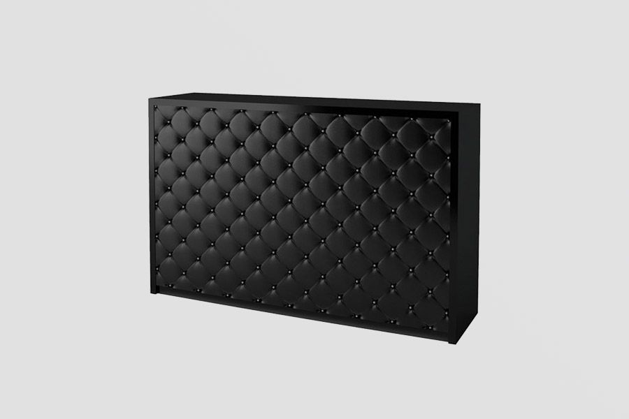 Администраторская стойка «Гламрок» выполнена в соответствующей стилистике – контрастные элементы, каретная стяжка с небольшим объемом, ярко выраженная геометрия и широкие возможности реализации индивидуального дизайна. Внешняя часть лишена мелких деталей, украшена стяжкой. Внутренняя – полноценное рабочее место для сотрудника салона.