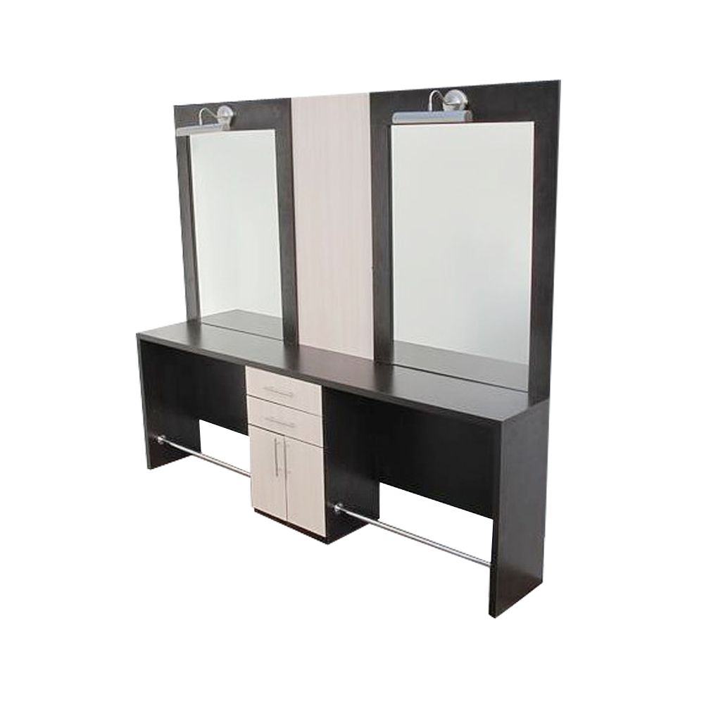 Для создания максимально комфортных условий работы парикмахера необходима функциональная мебель, отлично подойдет рабочее место Quicklу. Так как в процессе стрижки клиента, либо создания настоящего шедевра, мастер использует множество инструментов, средств по уходу и т.д. все это необходимо иметь под рукой. Данный вариант рассчитан сразу на двух парикмахеров, сюда входит 2 больших зеркала, общий шкафчик для хранения принадлежностей. Также изготовители добавили полки для каждого мастера и осветительные устройства. Даже если в салоне красоты плохое освещение, специалист способен настроить лампу так, чтобы работать было комфортно.