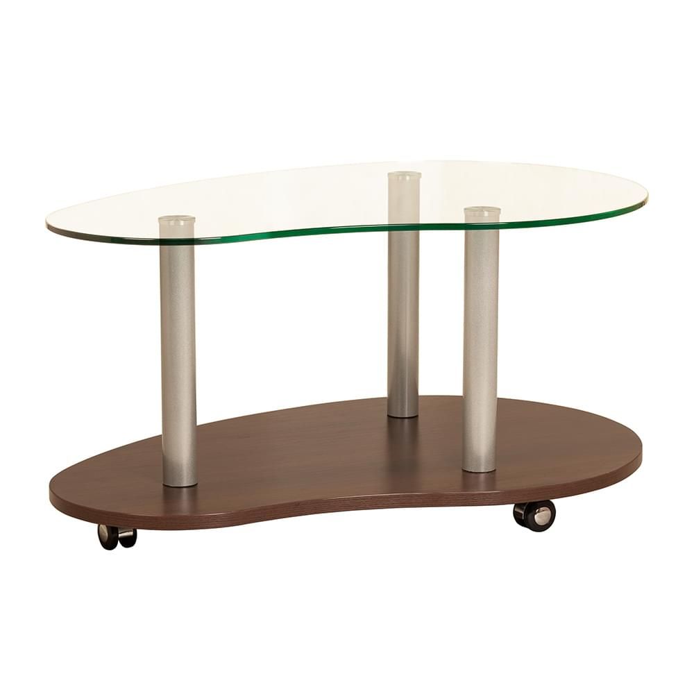 Журнальный столик Эвит – изящное, конкретное изделие, которое отвечает мировым тенденциям моды, при том, что стоит на порядок дешевле конкурентов, включая красивые интерьерные компоновки и сочный вид. Этот комплект состоит из крепкого, сильного каркаса, изящной стойки, дизайнерской, стеклянной столешницы, хромированных держателей, ламинированной доски, пластмассовых роликов с внутренним стержнем, плюс часть материала покрыта лаком отечественного производства. Стиль простой, однако популярный среди молодёжи, эстетов, и тех, кто ценит непревзойдённое искусство. Он максимально приближен к массовой точке продаж. Надежное на сто одиннадцать процентов. Фишка кроется в создании неповторимой ноты отличного шедевра.