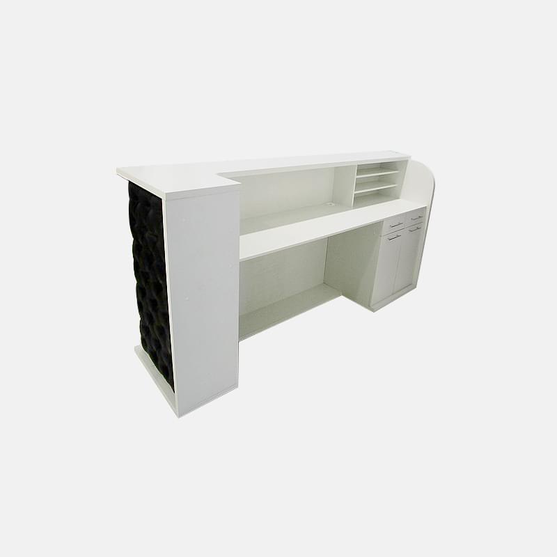 Администраторская стойка «Соната» сразу же привлекает к себе внимание. Каретная стяжка с мягкой текстурой выглядит современно и стильно, придает вашему заведению статуса и изысканности. Дополнительный эффект достигается за счет использования элегантных резных ножек, выступающих в роли некоего акцентного элемента. Со стороны администратора практически всю площадь занимают полочки и дверки, где можно разместить все для работы и личные вещи, если надобность в этом есть. Цвета отделки можно выбрать практически любые, что позволяет реализовать самые креативные идеи и придать вашей парикмахерской или салону красоты больше индивидуальности.