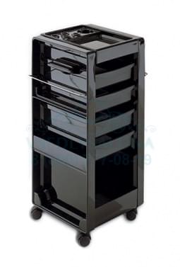 Парикмахерская тележка Т-30 оснащена глубокими и вместительными ящиками для парикмахерских принадлежностей, а также фенодержателем для еще большего удобства работы. Она выполнена в классическом черном цвете, что делает ее универсальной моделью практически для любой современной парикмахерской или барбершопа.