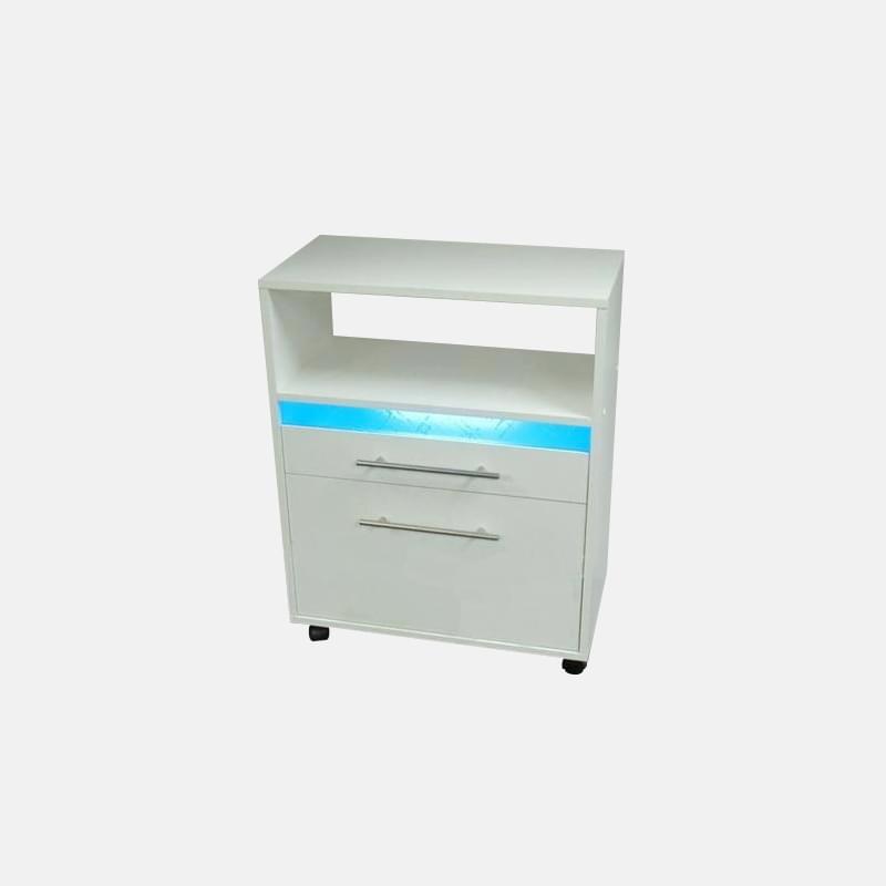 Главная цель тумбы Торелло это предоставить возможность мастеру хранить дополнительные рабочие инструменты и всякого рода мелочь. Осуществить это поможет бактерицидная УФ лампа, которая предназначена для стерилизации медицинских инструментов, а также их сохранности в течении семи дней. Также в комплекте есть два выдвижных ящичка, один из которых весьма компактный, а второй с большей вместительностью. Конструкция находится на передвижных колесиках, с помощью которых её с легкостью можно передвигать в нужную позицию. Цвет производители оставляют на усмотрение заказчика.