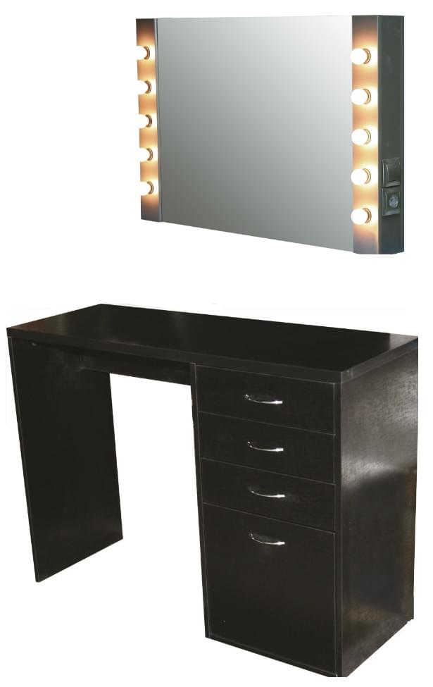 В рабочем столе удобно хранить парикмахерские инструменты и аксессуары для визажа.