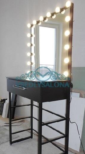 Мощная подсветка зеркала из 8 ламп дает хорошее освещение при работе.