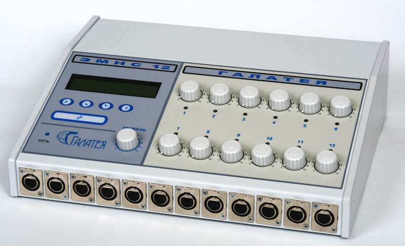 Миостимулятор ЭМНС 12 включает в себя 12 каналов, предназначенных для воздействия на разные группы мышц, имеет 3 группы программ: "Стандартные программы", "Ручной режим", "Записанные программы".