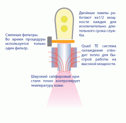 Благодаря большой площади кристалла 15 X 45 мм и высокой частоты следования вспышек, модуль обеспечивает высокую производительность. С первыми пробными импульсами пациент может подобрать необходимую температуру охлаждения, чтобы процедура проходила максимально комфортно.