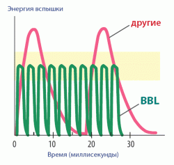 Модуль BBL не имеет длительного провала между вспышками, а доставляет энергию к мишеням мягко и в необходимом объеме.