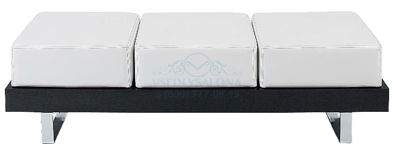 Трехместная банкетка для ожидания, выполнена в дереве или ламинате цвет венге, с тремя подушками. Стоит на широких металлических ножках. Возможен двухместный вариант.