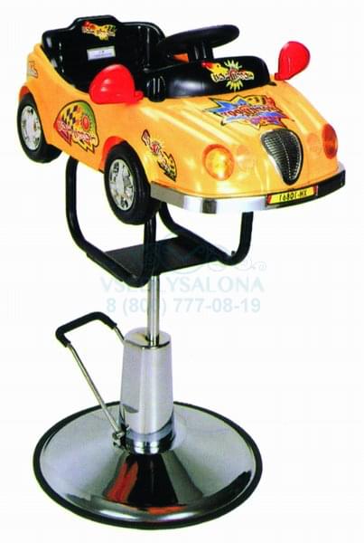 Парикмахерское детское кресло (Cтул детский) в виде машинки с гидравлической регулировкой высоты на металлическом дисковом основании. Предназначено для детей до 3-х лет.
