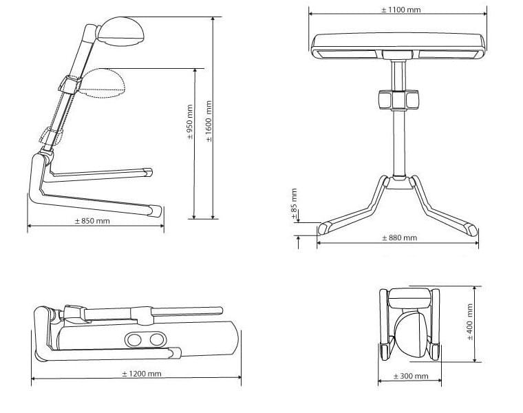 2 x 300 Вт – ультрафиолет, 2 x 1100 Вт – инфракрасные