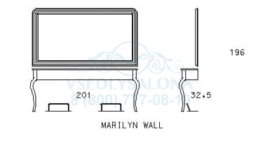 Двойное настенное рабочее место мастера, состоит из зеркала в золотой багетной раме и пристенного столика с двумя ножками, выполнено в лакированном дереве. Цвет дерева можно выбрать. Коллекция 2009 года. Размер:201x33x196