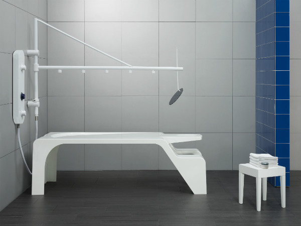 • - Горизонтальная душевая рейка, антикоррозийное исполнение, белого цвета, с возможностью регулировки высот