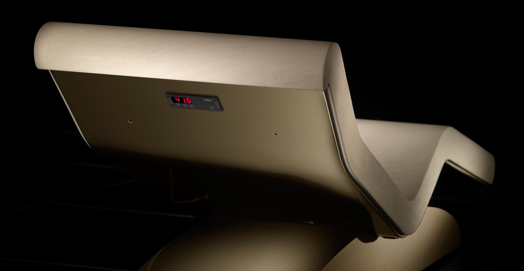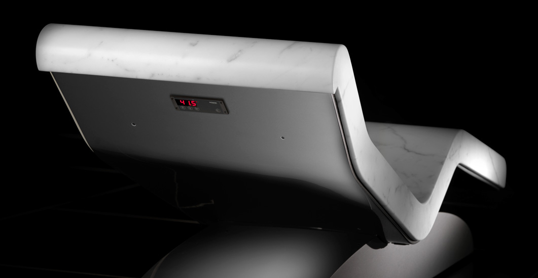 Ложе с подогревом, выполненное из монолитного мрамора станет не только роскошным дополнением любого СПА-салона, но и его функциональной единицей. При его производстве применяется эксклюзивная СПА-технология класса «люкс». Ложе производится в Италии с применением цельной мраморной глыбы. В основе действия ложа лежит длинноволновое инфракрасное излучение, целебным образом воздействующее на человеческий организм. Оно помогает снять боль в спине и шее, избавиться от синдрома хронической усталости и стресса, сбросить лишние килограммы, улучшить состояние кожи и сделать ее более здоровой и молодой. Модель отличается футуристическим дизайном и эргономичностью форм. Для заказа доступно несколько вариаций цветовых решений – черный, бежевый, молочно-белый. Нагрев поверхности ложа регулируется при помощи высокотехнологичной системы многозонного прогрева. В этой модели наилучшим образом сочетаются традиции и современные технологии. Ложе имеет мобильный шезлонг и цифровой дисплей.