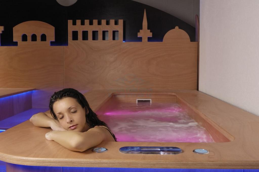 Подобная смена температур, в самом деле, производя тонизирующий эффект на сосуды, дарит телу также и множество других своих благ – глубокую релаксацию, детоксикацию, улучшение циркуляции крови и глубокий дренаж.Обе ванные оснащены многочисленными форсунками, через которые поступает обогащённый кислородом воздух.