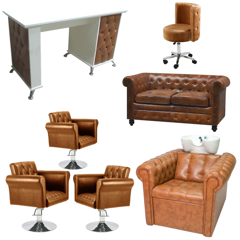 Комплект «Brown» – это комфортные и красивые предметы мебели для создания роскошного интерьера. Комплект состоит из трех парикмахерских кресел, одной парикмахерской мойки с креслом, удобного дивана для холла, маникюрного стола и маникюрного кресла для клиента. Благодаря использованию искусственной кожи все предметы, входящие в комплект, выглядят очень уютно. За счет этого они позволяют не только качественно выполнять услуги, но и создавать приятную и расслабляющую атмосферу.