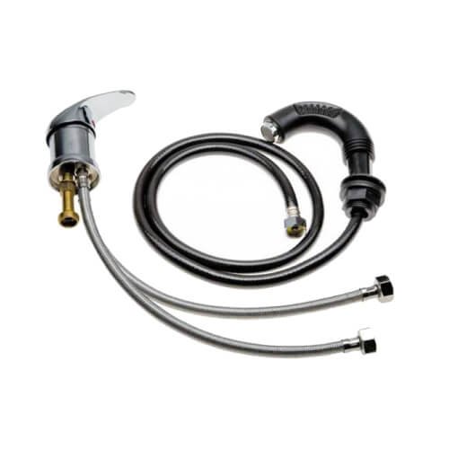 Модель JX-SLT5+JX-PT6 применима в изготовлении парикмахерских моек. включает душевую лейку черного цвета с пластиковым покрытием, гибкий прорезиненный шланг на душ и две коммуникационные трубки в металлической оплетке для системы подключения к холодной и горячей воде. Набор дополнен необходимыми комплектующими для установки оборудования. Не скользящее напыление на лейке упрощает работу мастера. Товар подходит для сборки моек Китайского производства, при установке на раковины альтернативных производителей могут возникнуть непредвиденные сложности.