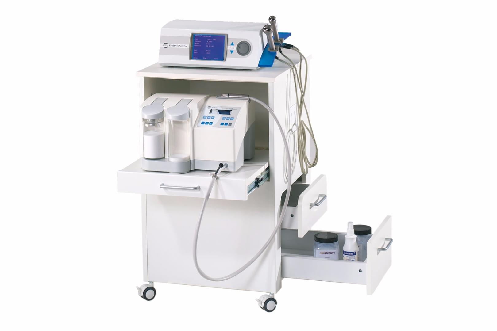 Практичная косметологическая тумба в элегантном исполнении, специально предназначена для расположения на ней аппаратов ИОНТО СКИН АБРАЗИОН (ИОНТО СКИН АБРАЗИОН Комфорт) и ИОНТО СОНО (ИОНТО СОНО Эффект).
