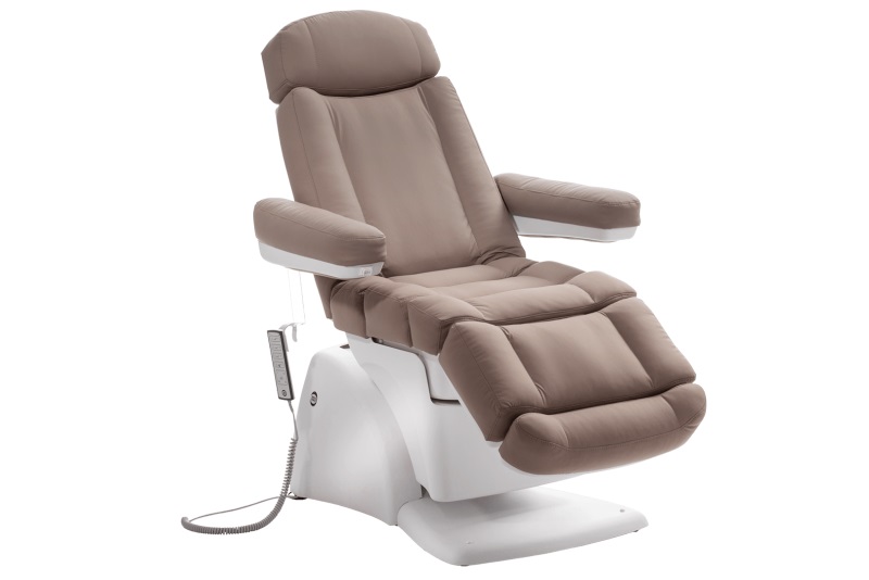 Полностью автоматизированное косметологическое кресло-кушетка. NEW: электрическое изменение глубины сиденья. Кресло-кушетку можно установить в горизонтальное положение для проведения массажа. Подлокотники легко перемещаются вперед для поддержки рук.