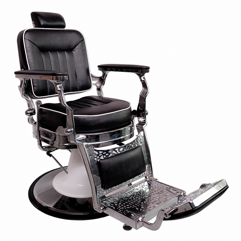 Кресло для барбершопа "Чикаго" - стильное винтажное кресло для барбершопа Чикаго предназначено для салонов премиум класса. Окантовка белым кантом, усиленная гидравлика, выдвижной подголовник, синхронизированная регулировка спинки и подножки.