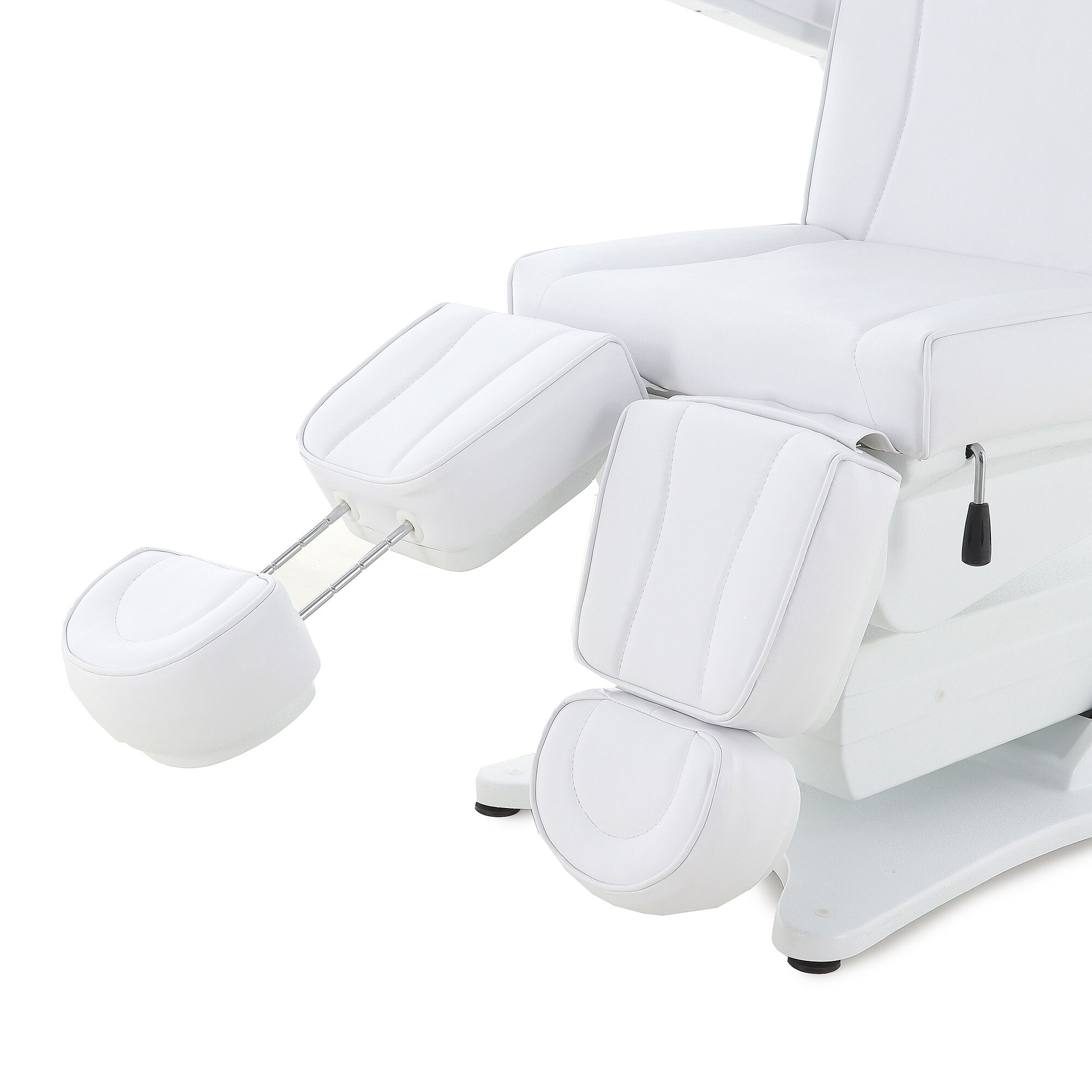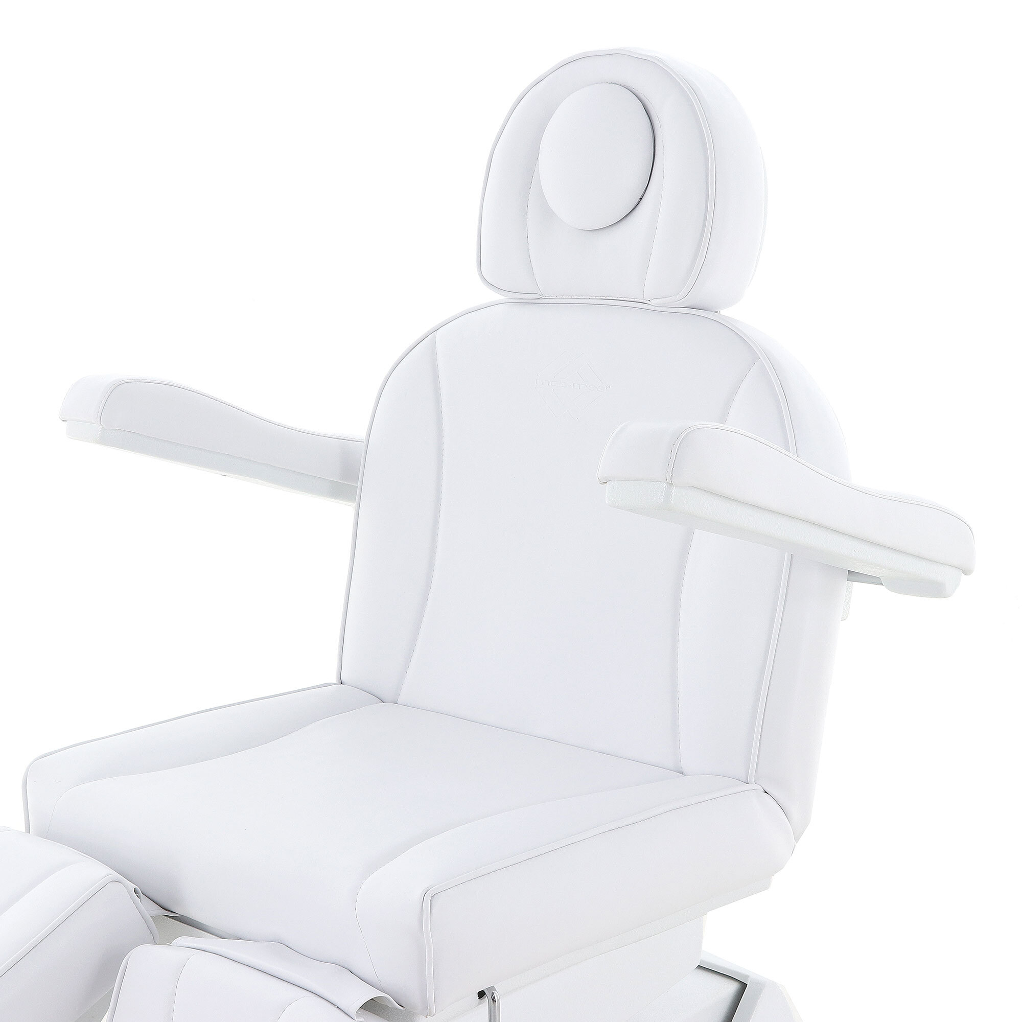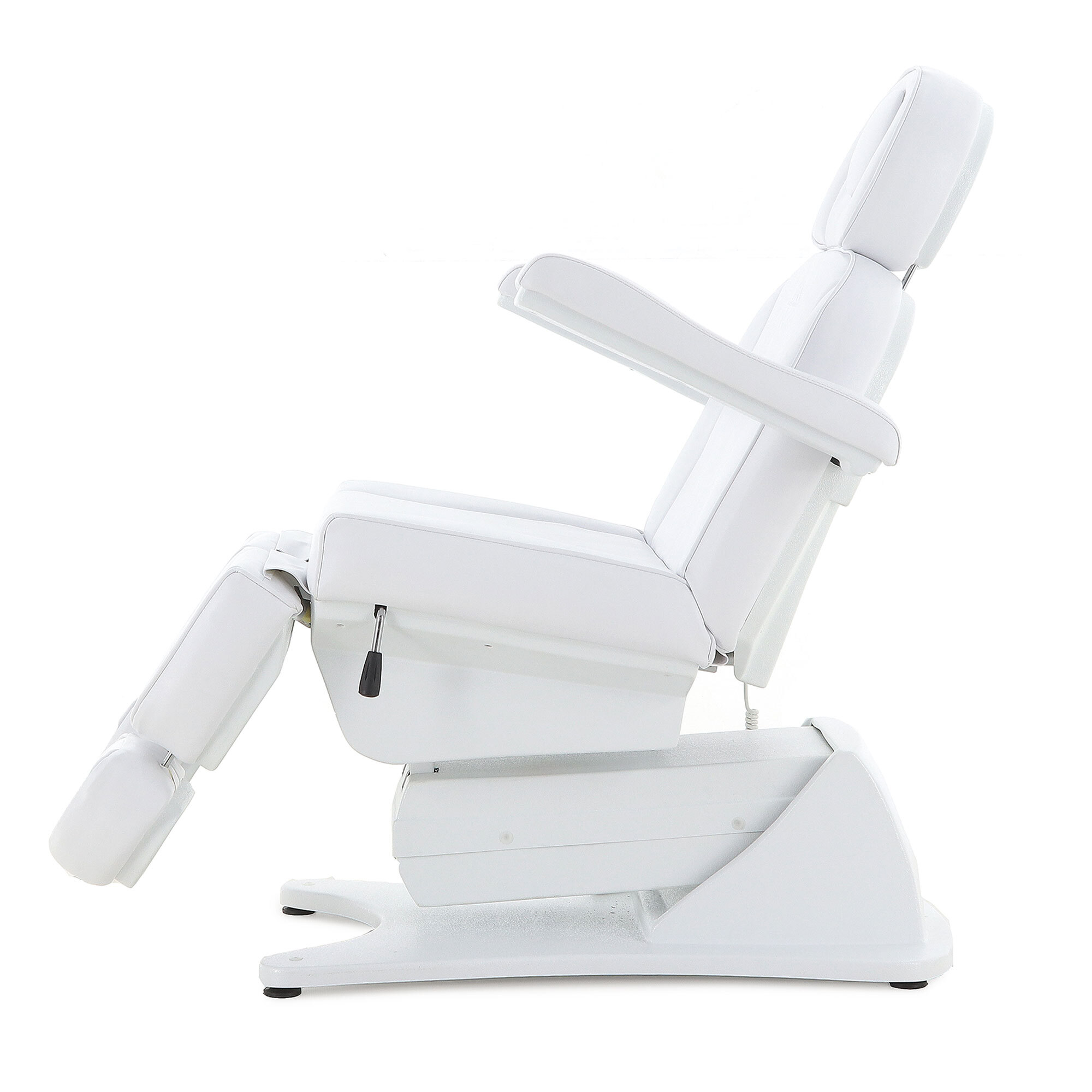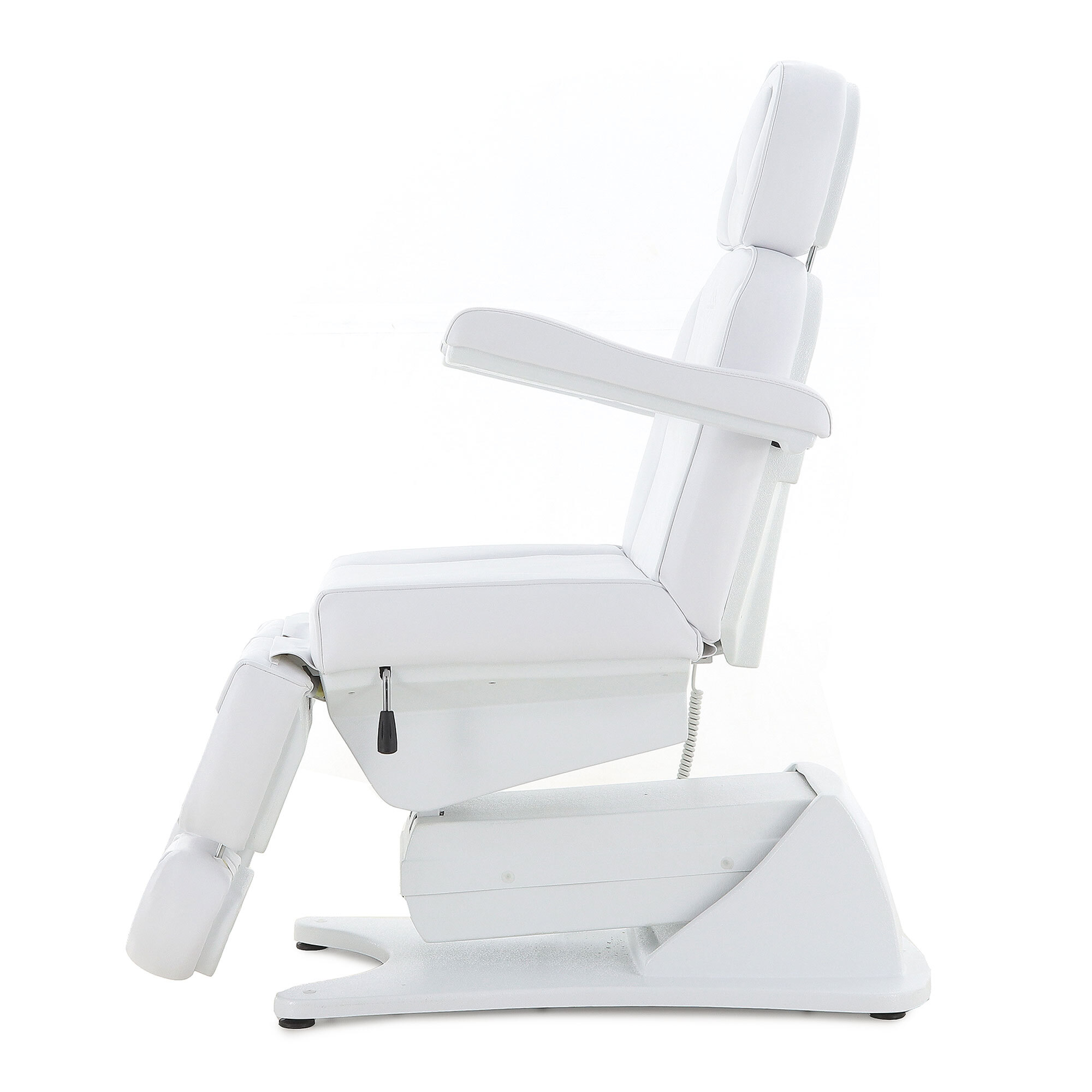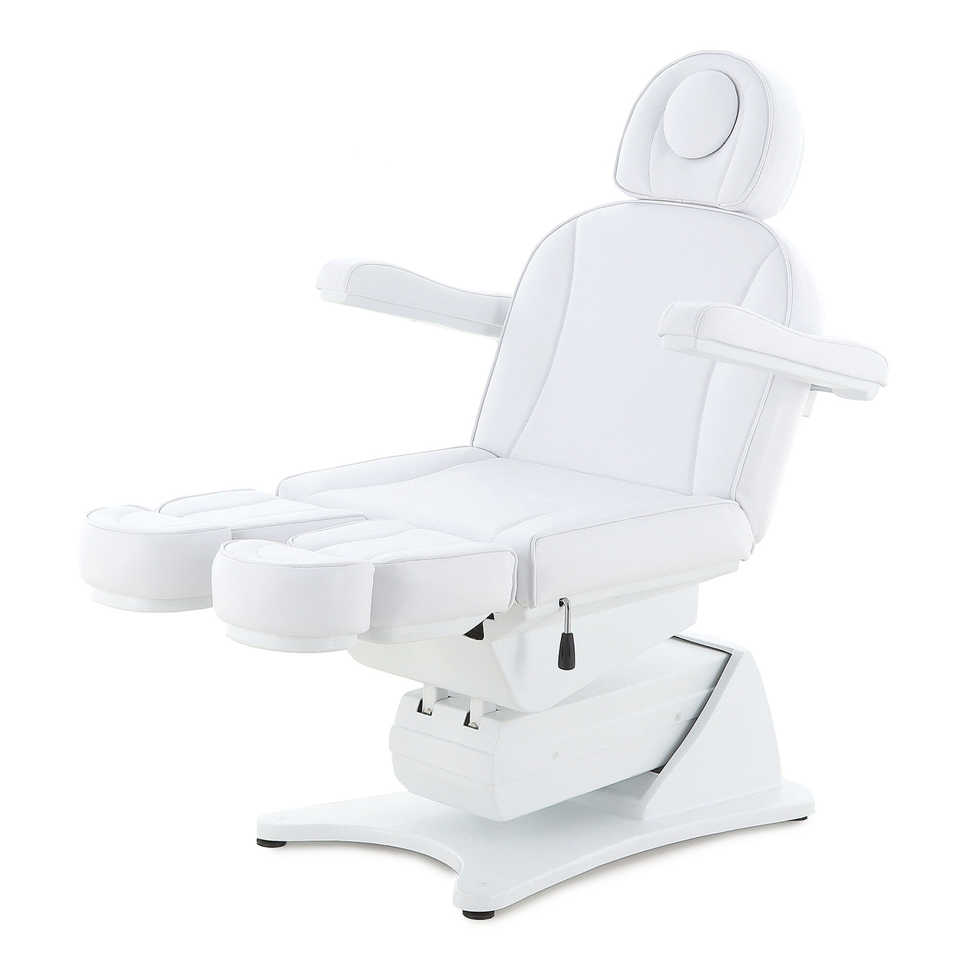 Использование кресла для педикюра "ММКП-3" (КО-193Д) - позволит создать комфортные условия для ваших клиентов. Такая модель отличается универсальностью за счет широких возможностей регулировки. Кресло имеет восемь секций, которые можно регулировать по углу наклона и положению. Это позволит подобрать наиболее комфортную позу для конкретной процедуры. Регулировка высоты – при помощи электрического подъемника. Всего кресло имеет три мотора. Максимально возможная нагрузка на конструкцию составляет 180 килограмм. Каркас кресла выполнен из стального сплава. Этот материал не подвержен коррозии, не портится от попадания влаги, не деформируется. В качестве наполнителя используется поролон толщиной 80 мм. Он не проминается, хорошо сохраняет свою форму и оказывает должную поддержку. Обивкой служит винил-люкс. Этот материал отличается высоким качеством. Он не протирается и не трескается, не портится от попадания влаги и косметических средств. Кроме того, он приятен на ощупь, не вызывает тактильного дискомфорта или аллергии. Подножки кресла регулируются отдельно друг от друга. Есть удобные подлокотники, которые можно откидывать, чтобы обеспечить удобную посадку. Для дополнительного комфорта – подголовник. Кресло установлено на устойчивую основу. Она не расшатывается. Благодаря этому кресло не скользит по различным напольным покрытиям. Дополнительное имеются подлокотники и подголовник для большего комфорта клиента. Цвет-белый