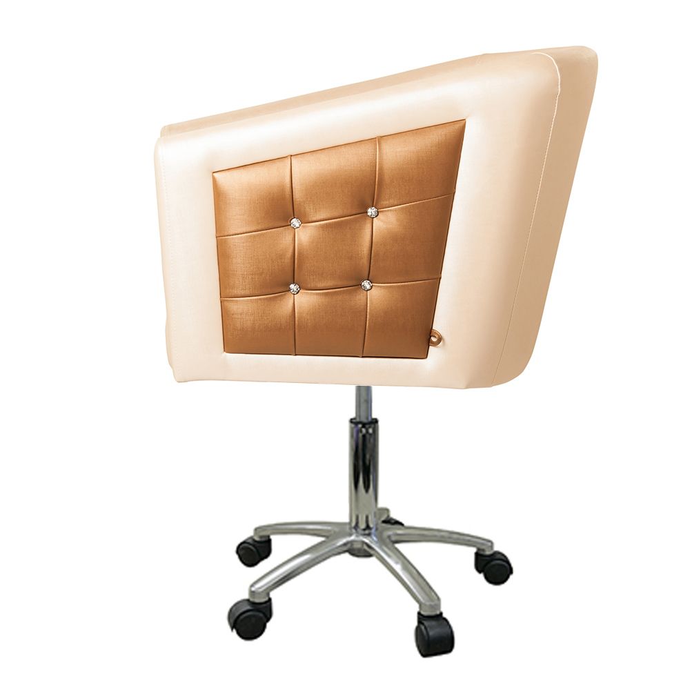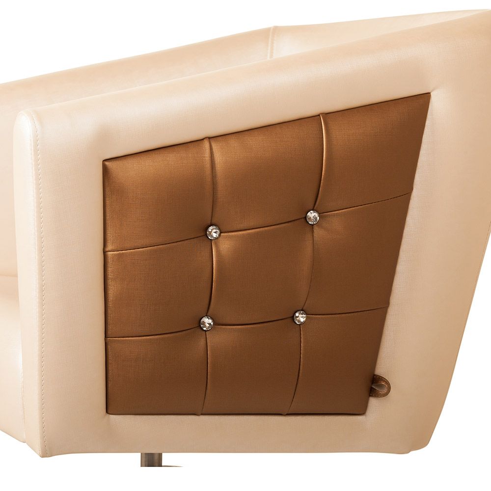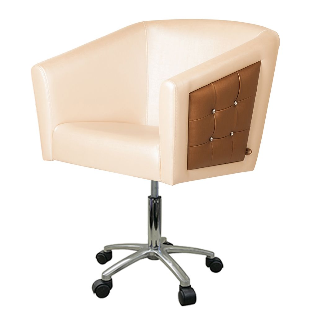 Маникюрное кресло клиента "Hunter II отличается от своего предшественника вставками в подлокотниках со стразами на каждой стороне. На сайте представлены комбинация белого и карамельного цвета. Но вы можете выбирать из более чем 25 цветов. Как известно, соединение кубических форм в пространстве и комбинация геометрических форм в плоскости наиболее нейтральна. Такой интерьер не будет слишком вычурным и простецким. Мы предоставляем выгодные условия кредита, по которому вы можете приобрести и эту модель. Основание - хромированное пятилучье.
