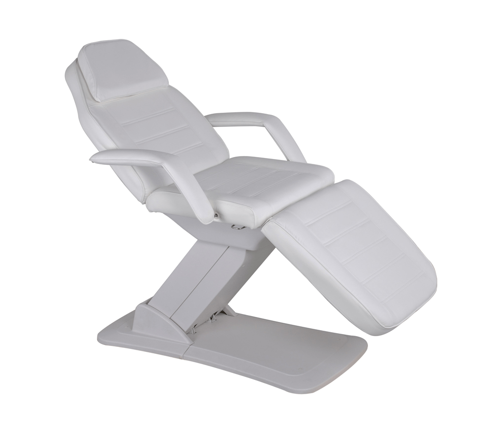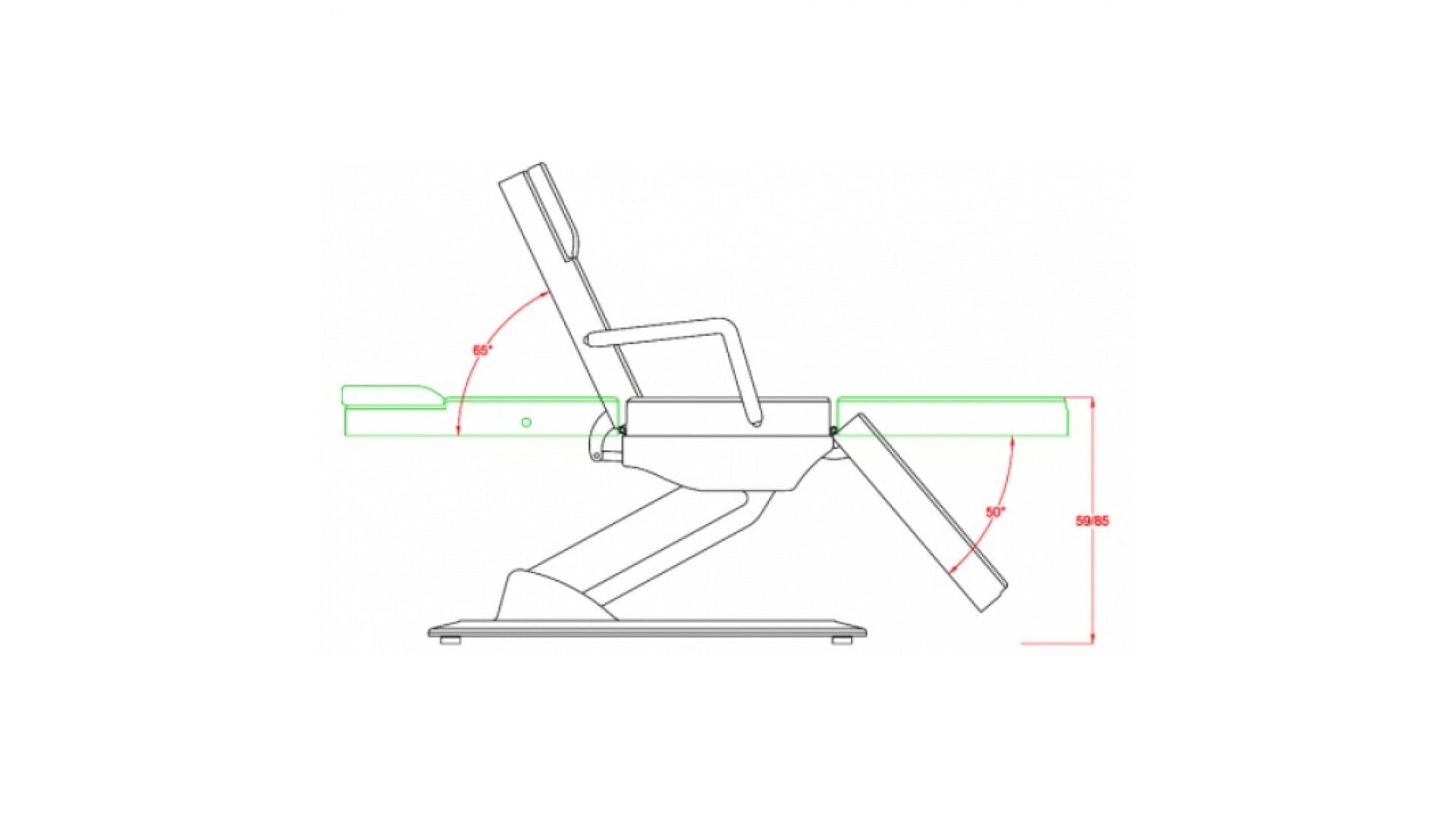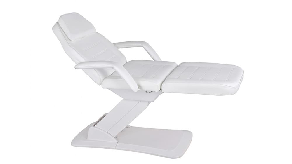 Электропривод позволяет регулировать высоту косметологического кресла, а также изменять наклон спинной и подножной секции.В головной части имеется вырез для лица, который в случае необходимости закрывается декоративной подушкой.