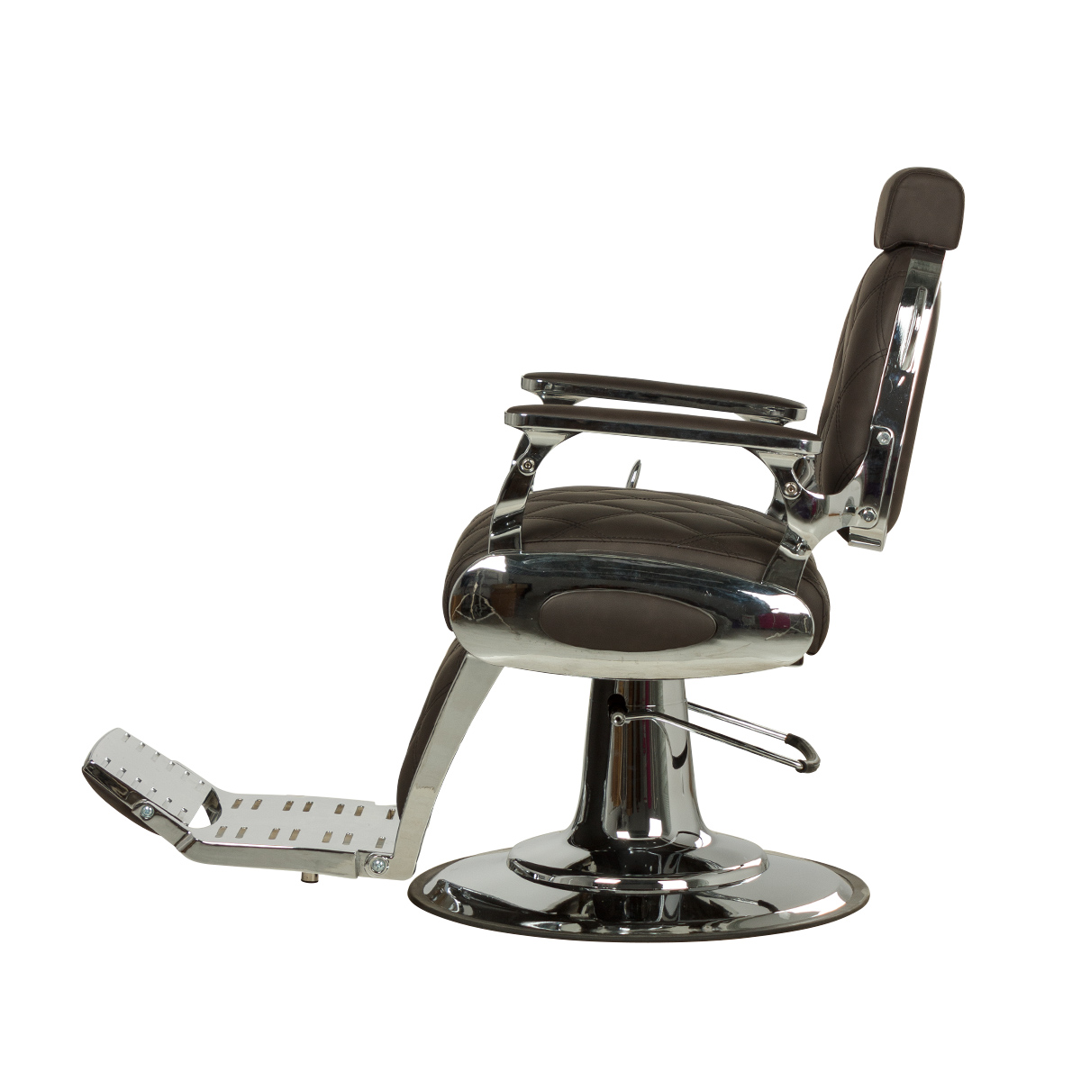Кресло мужское барбер "Оксфорд" - модель с большим количеством хромированных деталей и прострочкой большими ромбами. Кресло имеет круглое основание и надежную, усиленную гидравлику с декорированной накладкой, которая доступна в трёх исполнениях: хромированный, белый и черный. Все эти варианты отлично впишутся в современный барбершоп. Кресло имеет стандартный функционал для барбер кресел: