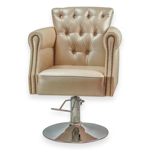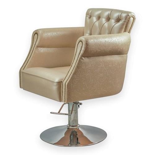 Теперь мебель в салоне красоты будет напоминать произведение искусства, особенно при покупке кресла парикмахерского Flower. Выполнена модель из качественного итальянского кожзама бежевого оттенка. Главная изюминка – декорация в виде каретной стяжки и мебельными гвоздиками пастельного цвета.