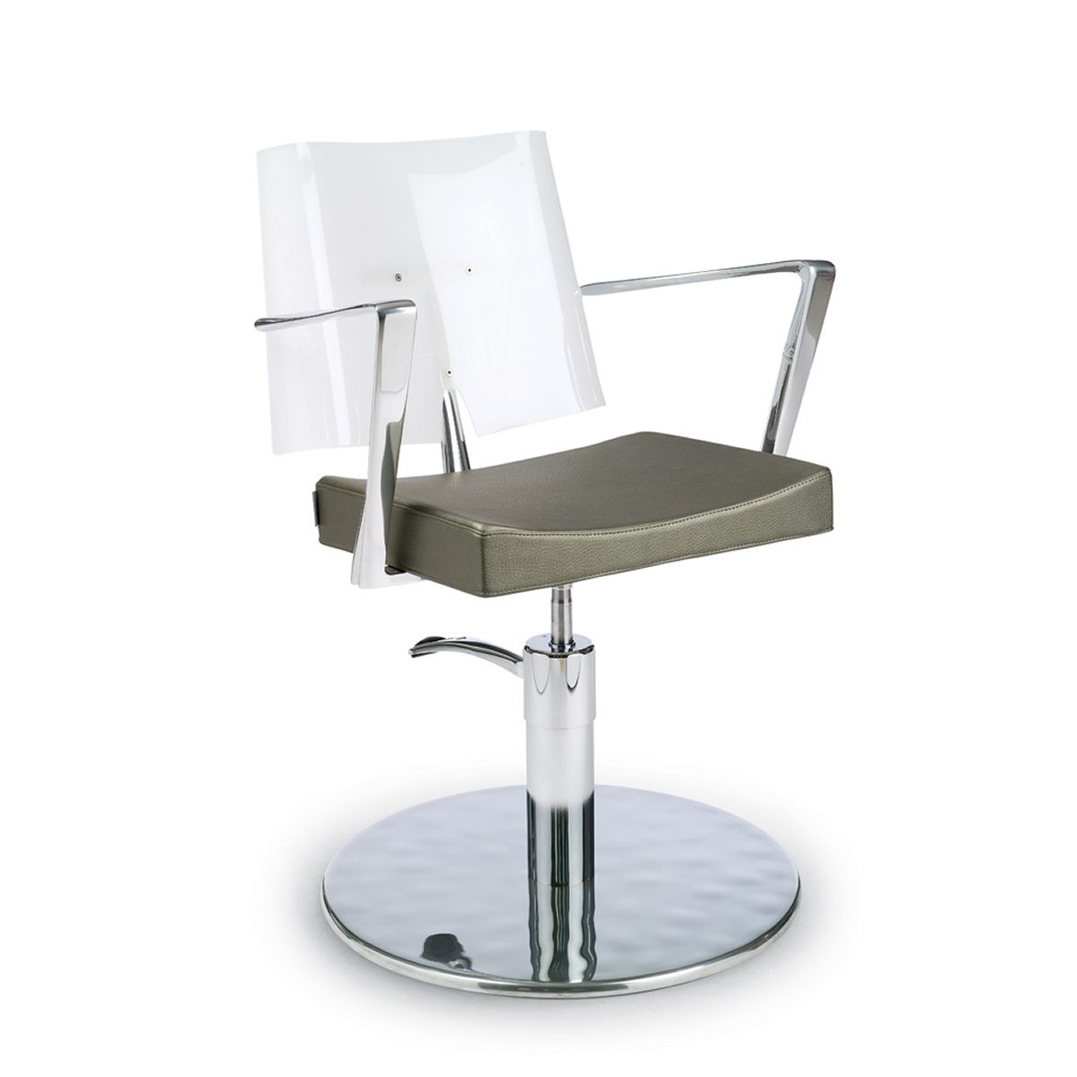 Кресло парикмахерское "ACRILIA" -  комплектуется металлическим основанием. Кресло с артикулом G-м60002642 оснащено спинкой из оргстекла и металлическими подлокотниками. Обивка - искусственная кожа высшего качества.
