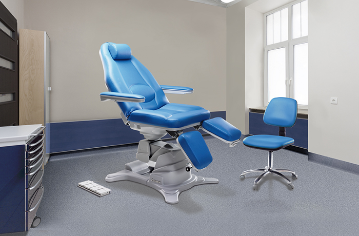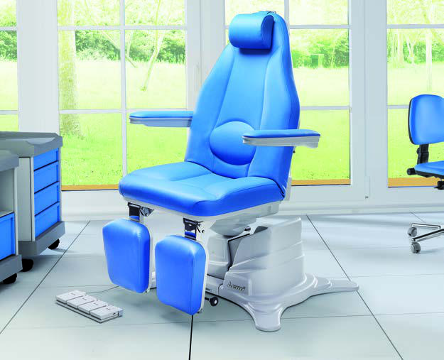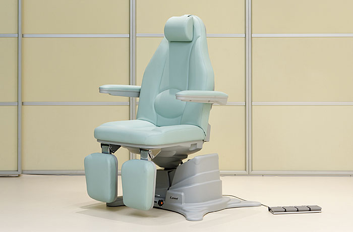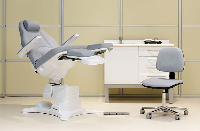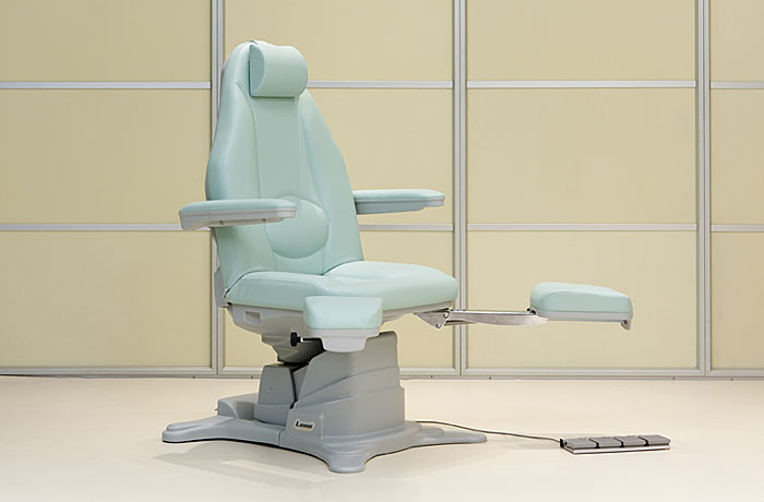 Для удобства управления используется выносной ножной пульт, благодаря которому руки мастера всегда остаются свободными. Подголовник, подножки и подлокотники регулируются вручную, но тоже без лишних усилий. Модель доступна в разных цветовых решениях.