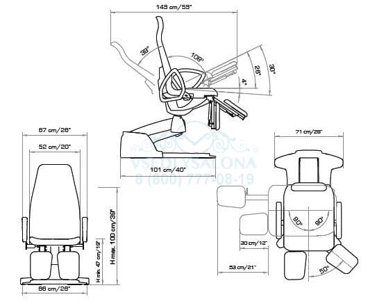 • Угол наклона тренделенбург: 25°;