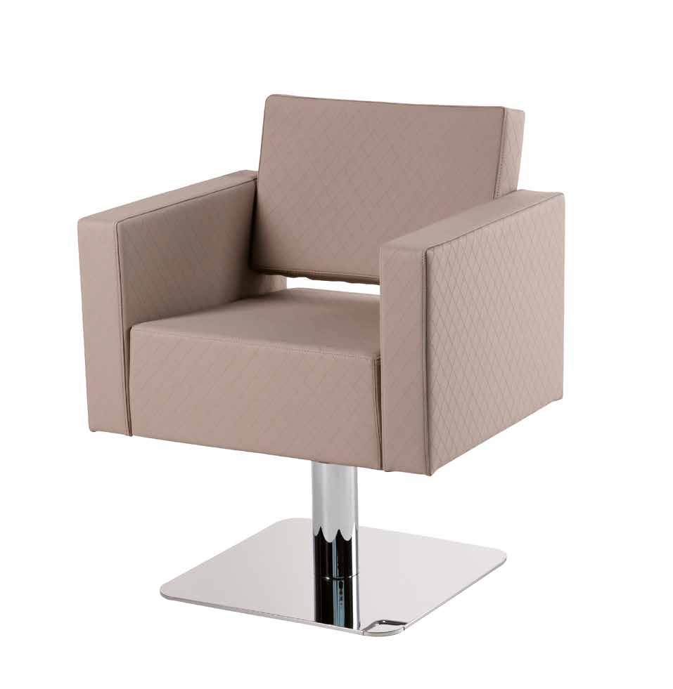 Кресло для клиента, выполнено из высококачественного поролона, каркас обтянут искусственной кожей, мягкие кожаные подлокотники. Комплектуется стационаром, гидроподъемником с основанием на выбор: пятилучье, диск, квадрат. Размер (ДхШ): 65х60