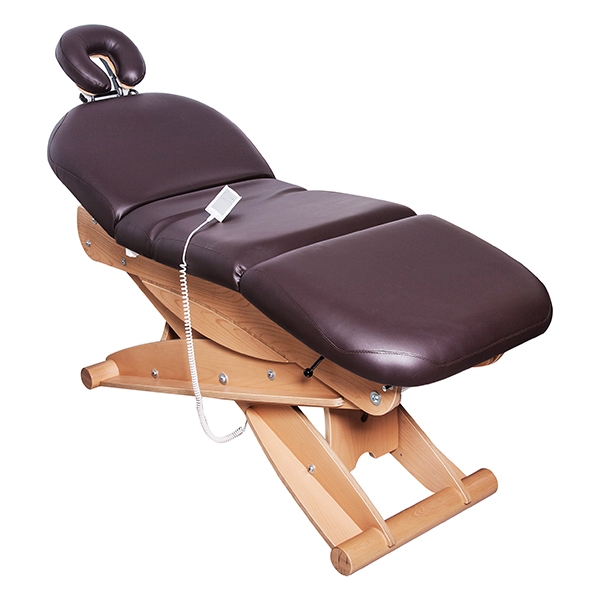 Кушетка оснащена двумя электромоторами, позволяющими регулировать высоту кушетки и положение подножной и спиной части. Регулировка спинной части осуществляется с помощью газлифта. Кушетка оснащена съемным подголовником.