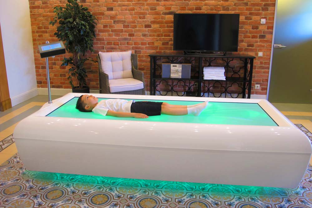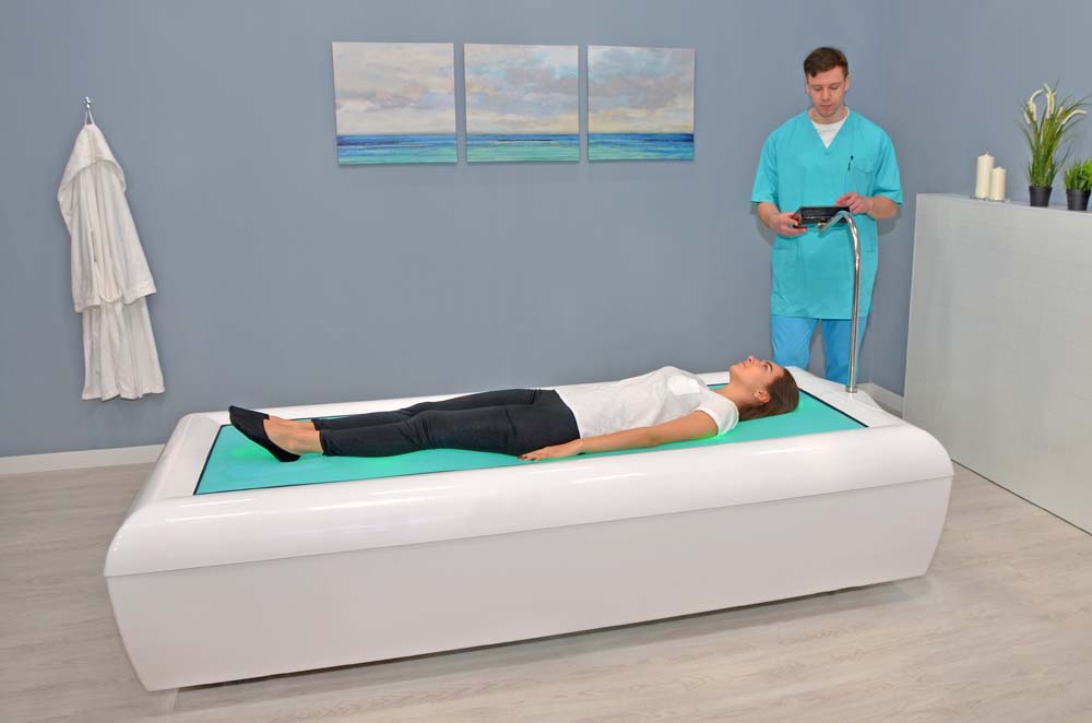 Пациент ложится на поверхность эластичной светопрозрачной мембраны, которая под его весом немного погружается в воду, обеспечивая полную анатомичность и воссоздание формы тела. Таким образом, он оказывается в состоянии «невесомости». Теплые струи воды через мембрану мягко массируют тело, усиливая релаксационный эффект. Продолжительность процедуры зависит от физического состояния пациента. В среднем, оптимальное время воздействия – 15-20 минут и рекомендуемая частота сеансов – 1-2 раза в неделю.