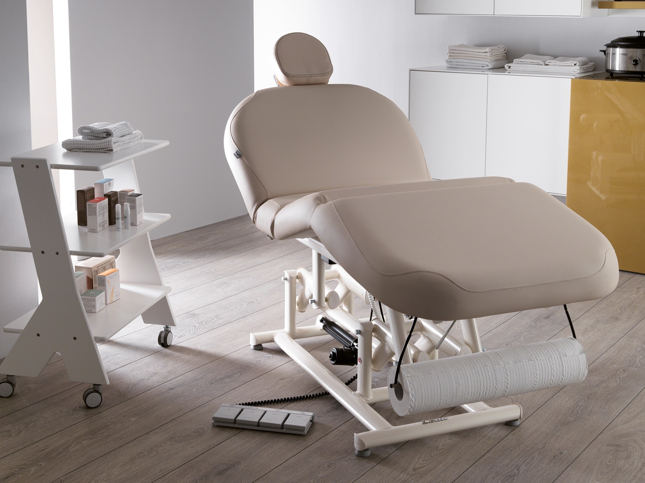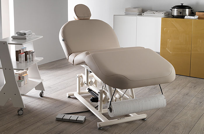 Каркас выполнен из металла, обеспечивающего отменную прочность и устойчивость модели. Матрас имеет эргономичную форму и обшит износоустойчивой и приятной на ощупь искусственной кожей. В комплект входит съемный подголовник американского типа, в котором предусмотрено отверстие для лица. Возможно изготовление в практически любом цветовом решении.