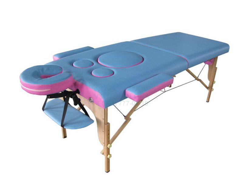 Предназначен для массажа будущим мамам и женщинам, кормящим грудью. Особенность этой модели – наличие на поверхности стола люверсов для груди (диаметром 15 см) и живота (37 см).