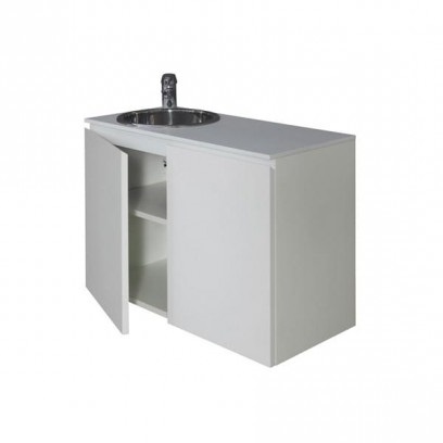 Лаборатория выполнена из ламината белого цвета с двумя открывающимися дверцами. Комплектуется раковиной и смесителем. Размер (ДхШхВ):80х37х55