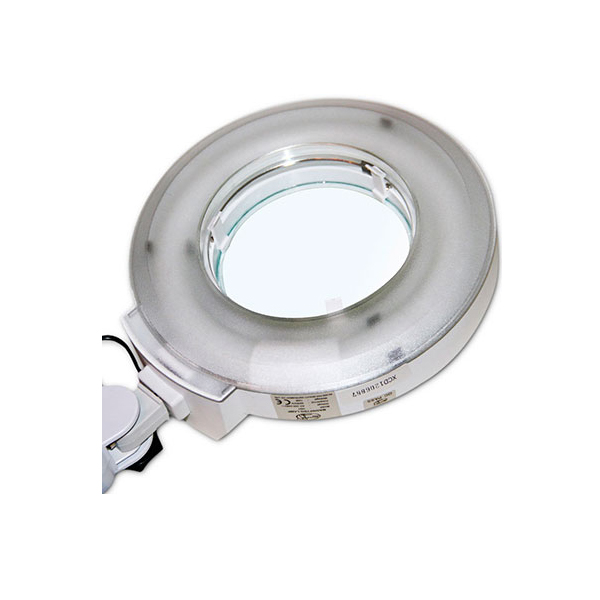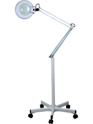 Лампа-лупа на штативе X-01 (LED) – современный источник освещения, который используется в косметологической отрасли. Светильник имеет круглую кольцевую форму, внутри него находится лупа, которая увеличивает изображение на 5 диоптрий. Прибор крепится на высоком штативе, внизу которого находятся небольшие колесики. Такая комплектация существенно повышает эксплуатационные показатели изделия, его можно легко перемещать в любую часть помещения.