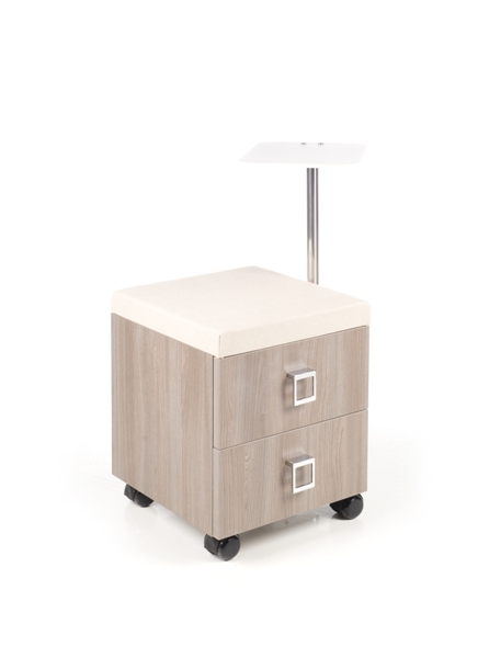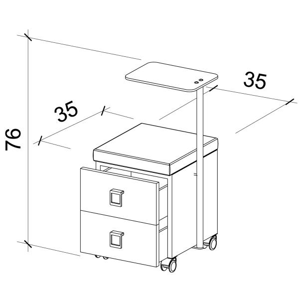 Чтобы стойку было проще перемещать, предусмотрели колесики, а хранить свои инструменты можно в двух выдвижных ящиках. Рабочая поверхность – отдельная полка настраивается под себя, под нужды и просьбы клиентов, что значительно упрощает процесс маникюра. Небольшой размер стойки позволит разместить ее в любом помещении.